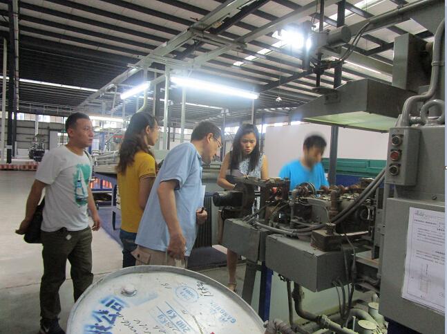隨后,大家來到了拉絲車間及包漆車間,常務(wù)副總戴建崇為大家詳細(xì)介紹了漆包線從原材料到成品的生產(chǎn)流程并帶領(lǐng)大家到正在為重慶和誠(chéng)生產(chǎn)QY線的操作機(jī)臺(tái)參觀。