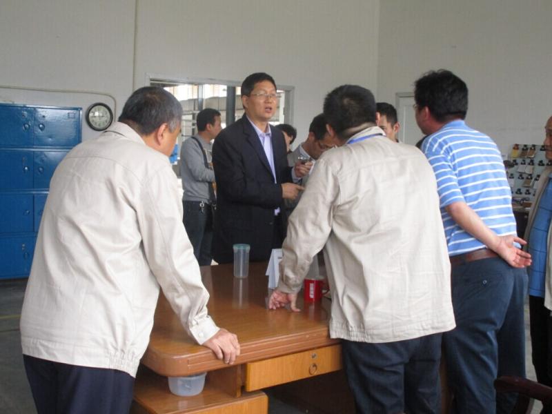 2014年10月21日,重慶力華自動化技術有限責任公司劉總一行共四人來我公司考察,在接待廳短暫休息后,主持公司工作的常務副總戴建崇帶領力華領導們分別參觀了我公司新辦公大樓、拉絲車間、包漆車間、檢驗室、庫房等。