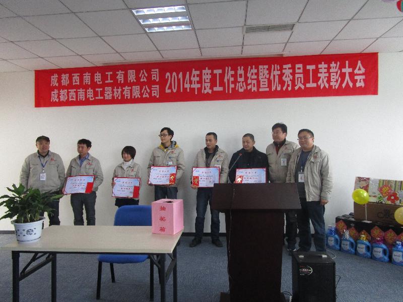 2015年2月14日,一個浪漫的艷陽天。今天,成都西南電工有限公司在公司培訓室順利召開2014年度工作總結暨優秀員工表彰大會,在會上公司常務副總經理戴建崇給大家帶來了來自公司董事長深切的問候、祝福、期望,希望全體員工同心協力為2015的工作努力奮斗。戴總在講話中對公司2014年度總體工作總結進行了簡單的闡述,參會全體員工以熱烈的掌聲對其進行了最為有力的回應。隨后在優秀員工表彰儀式中由優秀員工代表張軍士同志以及進步獎員工代表李小玲發表講話深切闡述獲獎感言,他們侃侃而談,字里行間流露西電情誼以及文化的傳承。為表達公司對全體員工一整年辛勤工作的肯定大會最后特設了全體抽獎環節,主持人詼諧幽默全場掌聲頻起、笑聲不斷,現場其樂融融。下午5點公司年終聚餐中大家舉杯共慶賀、羊年共大吉,笑聲與掌聲淹沒將人群淹沒在歡樂的海洋。
