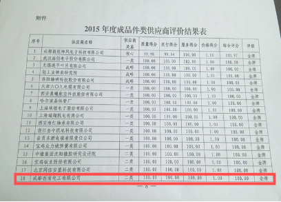 2015年,中航發動機控股有限公司依據《供應商績效評價手冊》,組織15家軍品批產所屬單位位533家供應商在質量、交付、服務、價格等方面進行評價,并分附件、成品件、鍛鑄件毛坯、金屬、非金屬原材料五大類供應商進行綜合排名。